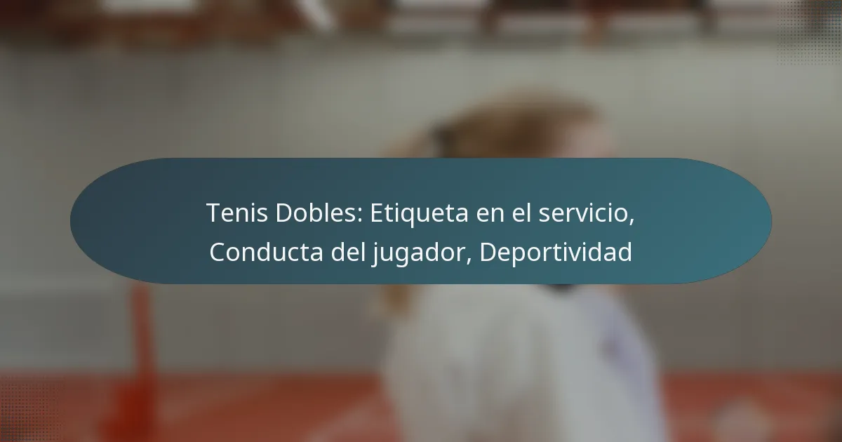 El tenis en dobles requiere que los jugadores se adhieran a una etiqueta de servicio y conducta específicas para promover un juego justo y agradable. Los elementos clave incluyen mantener un orden de servicio adecuado, una comunicación efectiva con los compañeros y mantener el espíritu deportivo, que enfatiza el respeto y la integridad hacia todos los participantes. Al priorizar estos valores, los jugadores pueden mejorar el trabajo en equipo y crear una atmósfera positiva en la cancha.